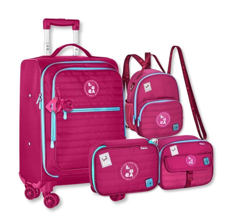 Kit Mala Escolar Luluca Rodinhas 360 Lancheira e Estojo
