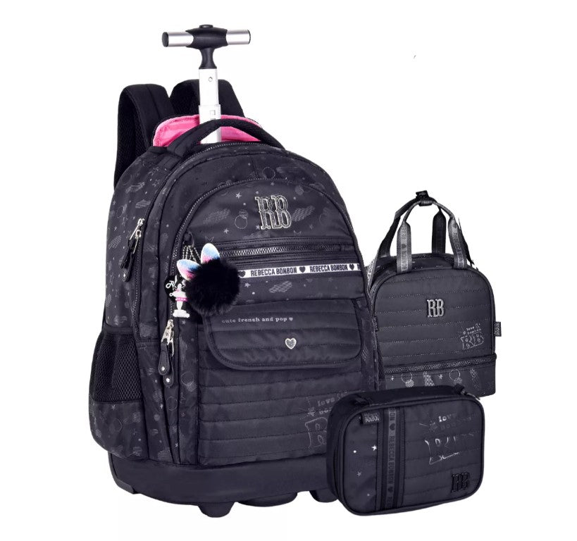 Kit Mochila Rodinhas Rebecca Bonbon Holográfica Lancheira e Estojo