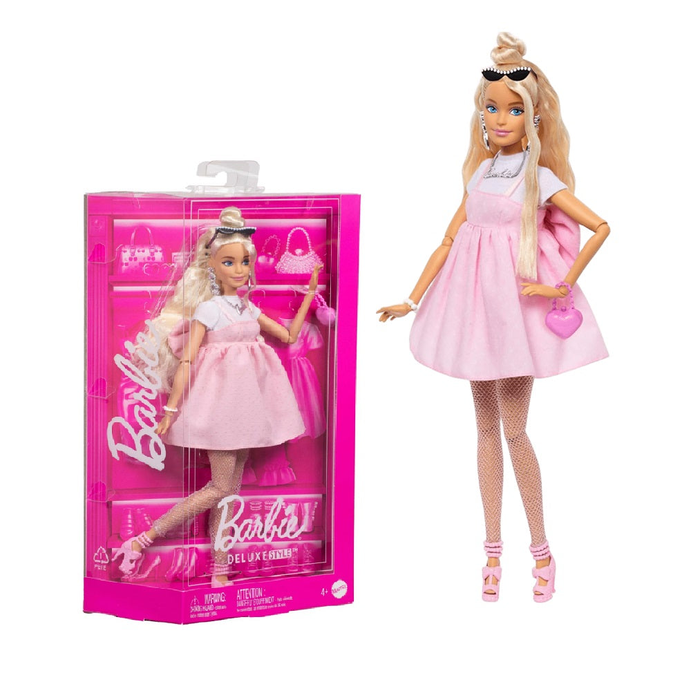 Barbie Deluxe Cabelo Loiro Vestido Rosa com Laço - Mattel