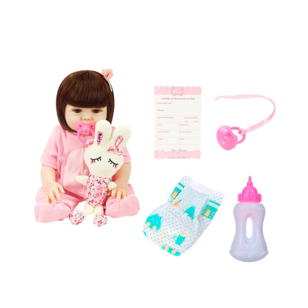 Boneca Bebê Reborn com Macacão e Acessórios Baby Star