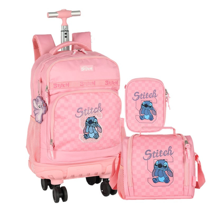 Kit Mochila de Rodinha Stitch Rosa com Lancheira e Estojo – Luxcel Oficial
