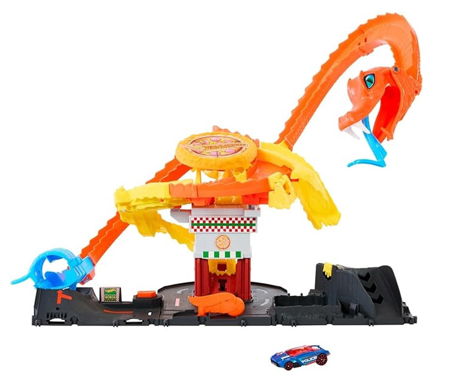 Uma emocionante batalha entre cobra e pizzaria! O Hot Wheels City Pista Ataque de Cobra...