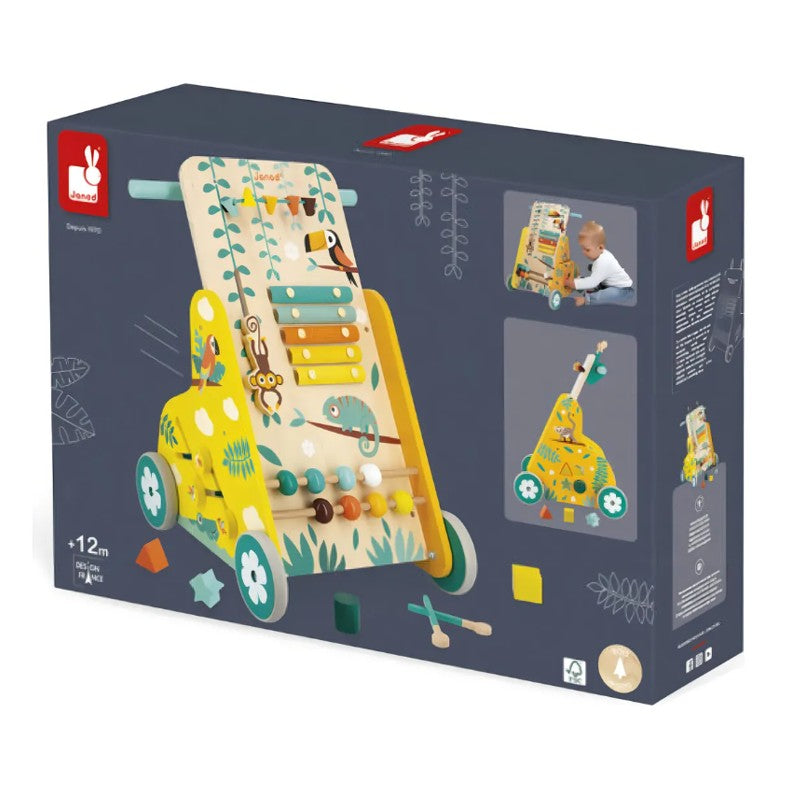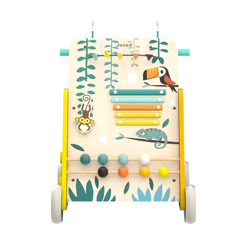 Descubra o Coração da Selva Tropical com o Andador de Madeira Multi Atividades Tropik. Este andador encantador e colorido é mais do que um simples brinquedo. Ideal para crianças a partir dos 12 meses, ele é perfeito para acompanhar seu bebê enquanto ele aprende a andar e se diverte por horas. Imagine seu pequeno explorador descobrindo as maravilhas da selva tropical com 6 atividades incríveis: ábaco, caixa de formas, macaco deslizante, labirinto, contas deslizantes e xilofone! Feito de madeira de alta qualidade com tinta à base de água, este carrinho é silencioso graças ao revestimento de borracha nas rodas e garante segurança e durabilidade.