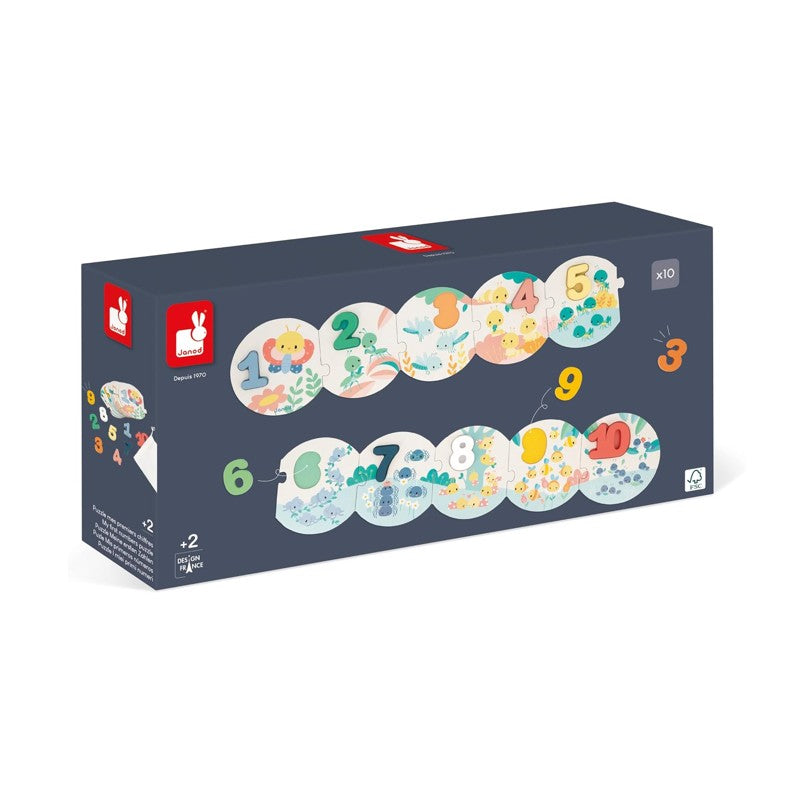 Observe os pequenos aprendendo gradualmente a contar com este magnífico quebra-cabeça de papelão, completo com números de madeira coloridos para encaixar! Os animais foram encarregados de ajudar a tornar a contagem até 10 mais divertida para crianças com 2 anos ou mais. Depois que este bonito quebra-cabeça de 10 peças, com cores pastel, for concluído, a próxima atividade é colocar cada número na posição correta. Há, é claro, uma ordem cronológica, mas as crianças também poderão contar os animais para determinar o número correto para cada peça.