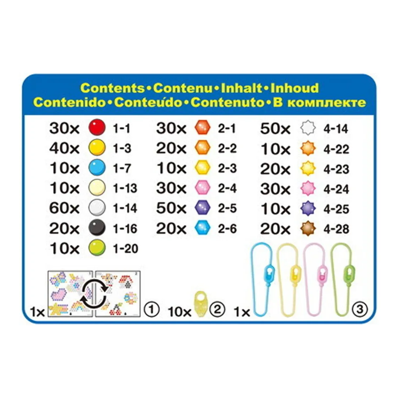 O conjunto Charm Maker inclui mais de 480 beads de star, solid e jewel em 19 cores, juntamente com 1 folha de modelo e instruções. Use os acessórios do chaveiro e as tiras coloridas incluídas para transformar suas criações de Aquabeads em bonitos encantos! Este conjunto requer Flip Tray Set e Sprayer, cada um vendido separadamente e incluído nos conjuntos completos Aquabeads. Seguindo a folha de modelo, coloque os beads na bandeja para criar seu design. Usando o spray, borrife água sobre os beads para fazê-las colar magicamente juntas!