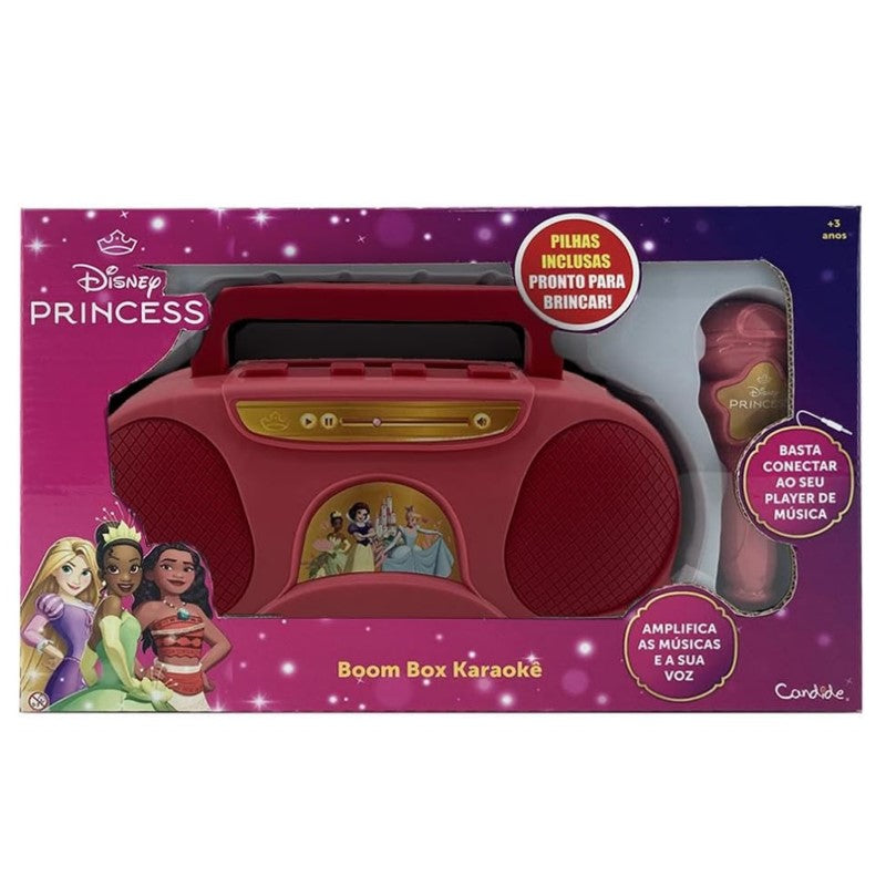 Apresentamos o encantador Boombox Karaokê Infantil Princesas, um aparelho de karaokê com função amplificadora que vai levar toda a magia das princesas para suas festas musicais. Com este aparelho, você pode conectar seu celular ou dispositivos de áudio e soltar a voz, cantando suas músicas preferidas ao lado das suas princesas favoritas. Divirta-se com as Princesas Disney e se transforme em uma estrela do karaokê, a diversão e a magia estão garantidas. Boom Box Karaokê Disney Princesas, possui conexão P2 e 1 microfone para as crianças soltarem a voz.