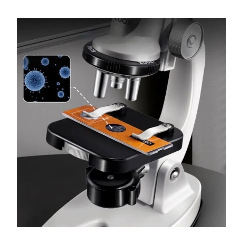 Desperte a curiosidade científica das crianças com o incrível Microscópio, um brinquedo educativo perfeito para pequenos exploradores. Com uma ampliação de até 1200x, este microscópio permite observar detalhes incríveis de células, tecidos, plantas e outros materiais invisíveis a olho nu. Equipado com iluminação LED de alta qualidade, ele proporciona imagens nítidas e brilhantes, garantindo uma experiência de aprendizado interativa e envolvente. Feito para estimular o raciocínio lógico e o interesse pela ciência, é ideal para crianças que adoram experimentar e descobrir o funcionamento do mundo ao seu redor.