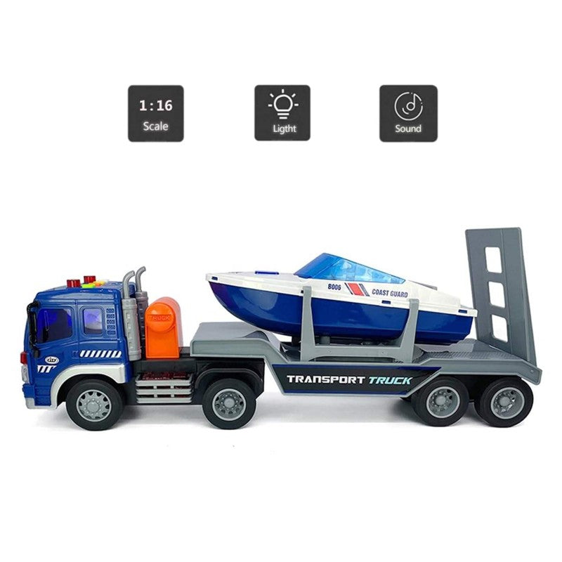 Diversão em dobro para os pequenos aventureiros! O Caminhão Cegonha com Lancha 1:16 da Brink Center combina ação nas estradas e emoção na água, proporcionando uma brincadeira ainda mais completa e criativa. Com sistema de fricção, basta puxar ou empurrar o caminhão e soltar para ele sair em movimento. Os efeitos de luz e som tornam a experiência mais realista, simulando o funcionamento de um veículo de verdade e deixando a brincadeira ainda mais envolvente. perfeito para criar cenários de transporte e aventuras aquáticas. Seu tamanho em escala 1:16 garante mais presença, detalhes e realismo.