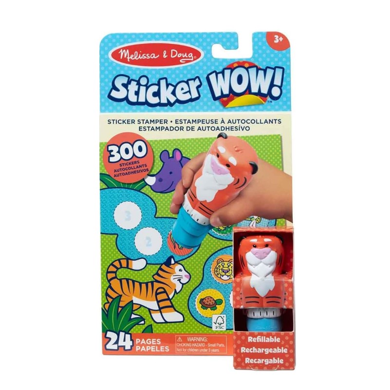 Melissa & Doug Sticker WOW!TM é uma maneira totalmente nova de brincar adesivos, use o personagem fofo e colecionável para carimbar com tema safari adesivos no bloco de atividades Tiger de 24 páginas e em outras artes criativas projetos Inclui adesivo colecionável WOW!TM Pumpkin the Tiger carimbo, 300 adesivos fáceis de remover (100 exclusivos com tema safari designs) e bloco de atividades de 24 páginas. Atividades divertidas de carimbar e aprender incluem números, contagem, correspondência, pesquisa e localização e muito mais