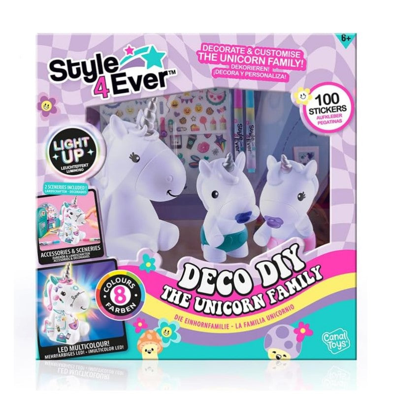 A Decore Sua Luminária Família de Unicórnios é uma experiência de personalização e criatividade para as crianças. Com adesivos, canetas e acessórios inclusos, este kit DIY permite que os pequenos decorem e iluminem seus próprios unicórnios, criando um ambiente encantador e colorido no quarto. Inclui um unicórnio principal, dois bebês, dois cenários decorativos, mais de 100 adesivos e duas canetas, tudo projetado para soltar a imaginação e deixar a decoração ainda mais especial.