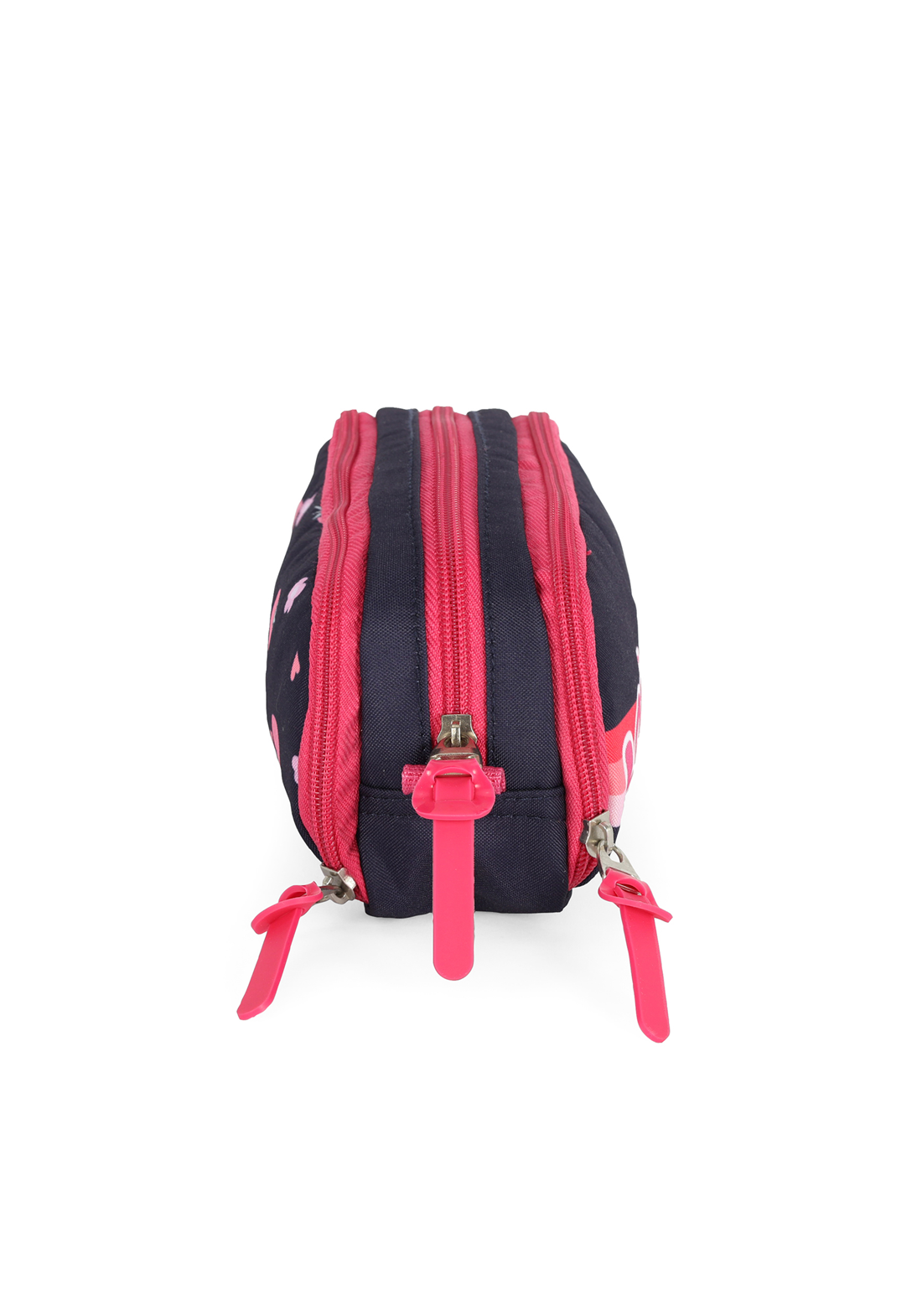 Para os fãs do ursinho Lotso que buscam um estojo mais discreto, mas com organização de sobra, este modelo oficial da Disney é perfeito! Fabricado pela Luxcel, ele combina o fundo em Azul Escuro (Marinho) com os detalhes vibrantes em Pink e a estampa fofa do Lotso com seus morangos.