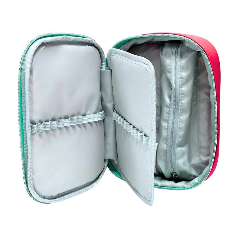 O fechamento por zíper personalizado garante que todos os seus tesouros estejam sempre protegidos e organizados. Possui elásticos inteligentes para guardar seus lápis com segurança, sem risco deles saírem passeando por aí. E como se não bastasse, conta com um estojo embutido na parte interna, para você armazenar todos aqueles itens que não podem faltar, como clips, apontadores e adesivos super fofos!