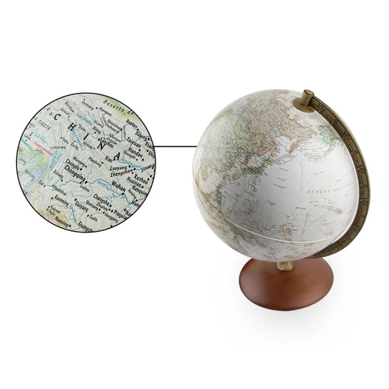 Com 30 cm de diâmetro e iluminação interna suave, ele destaca os detalhes do mapa político-físico com riqueza visual, funcionando também como luminária decorativa para escritórios, bibliotecas, salas de estudo ou ambientes corporativos. Ideal para quem deseja unir decoração refinada, conteúdo educativo e prestígio de marca em uma peça única. Seja para o seu ambiente ou como presente especial, este globo traz o mundo até você com charme e precisão.