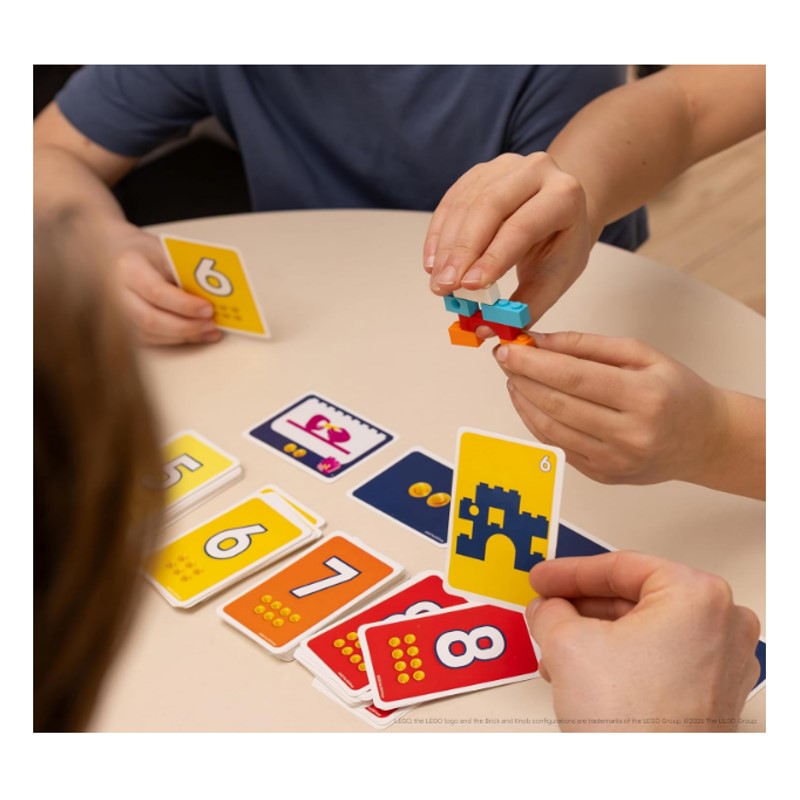 O novo jogo LEGO é pura nostalgia em forma de diversão, perfeito para reunir amigos e famílias de todas as idades. Neste party game caótico e cooperativo, comunicação é tudo os jogadores formam duplas, onde um descreve uma imagem sombreada (sem poder mostrar) e o outro tenta construir antes que o tempo acabe. Cada rodada é uma corrida contra o relógio quem termina primeiro vira uma ampulheta de 30 segundos e só marca ponto se a construção estiver certinha. As cartas trazem desafios para todos os níveis desde instruções mais simples até silhuetas sombreadas com regras extras malucas, como montar de olhos fechados ou sem tirar as peças da mesa.