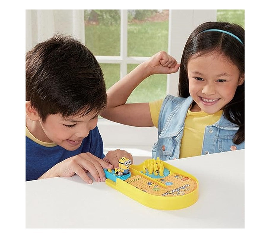 Descubra a diversão e a emoção do Jogo Minions U-Turn Bowling da Epoch Games! Este jogo de mesa oferece uma experiência de boliche única com uma pista em formato de U, perfeita para momentos de entretenimento com a família e amigos. Com os adoráveis Minions como protagonistas, o objetivo é derrubar o maior número possível de pinos. Para jogar, basta puxar a alavanca para trás e soltar, fazendo com que o Minion lance a bola de boliche. Ajuste a direção da pista e teste suas habilidades para acertar o alvo. Ideal para todas as idades, o Jogo Minions U-Turn Bowling garante risadas e diversão em qualquer reunião. Quantos pinos você consegue derrubar?