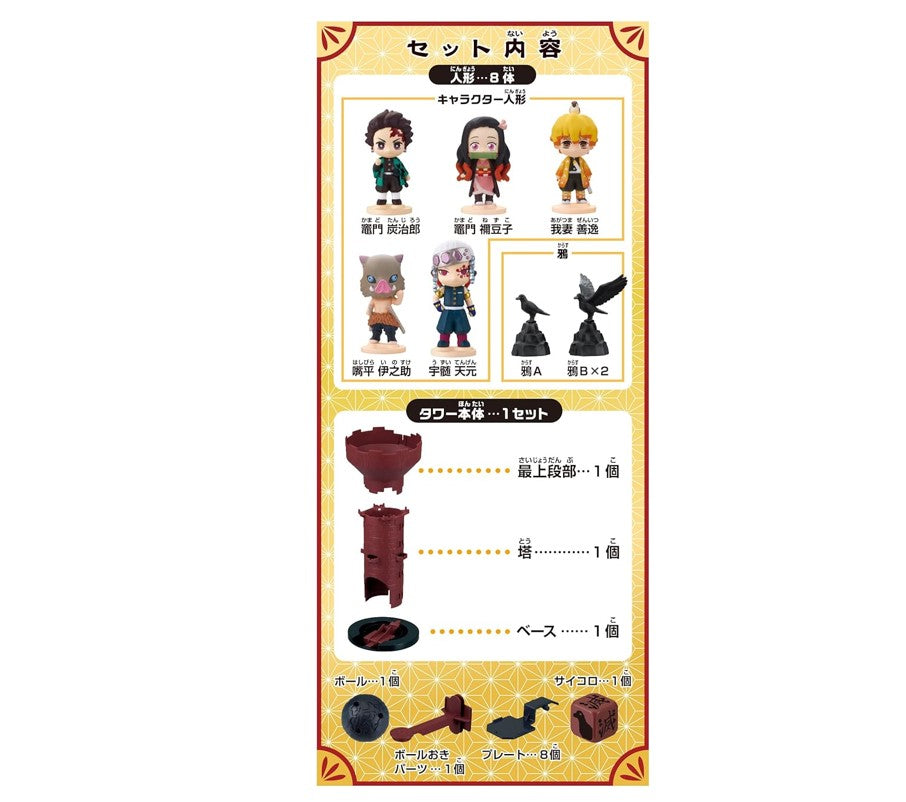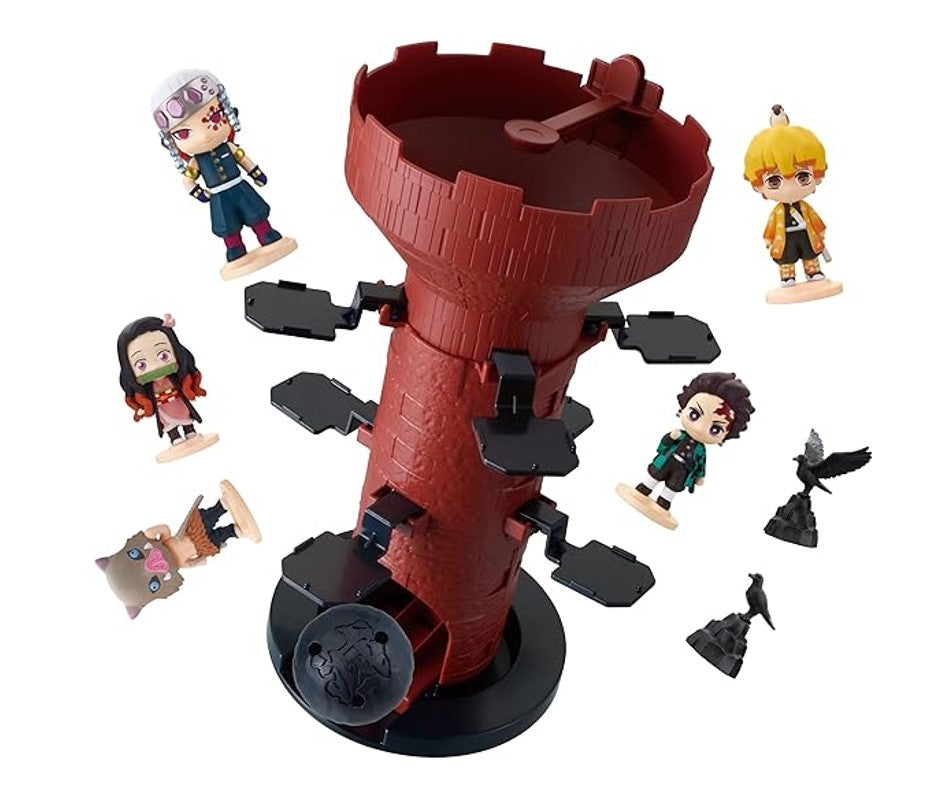 Demon Slayer Blow Up! Shaky Tower é um jogo de equilíbrio emocionante. Coloque as figuras do Demon Slayer sobre a torre, certificando-se de não deixar cair a bola colocada no topo da torre. Sete figuras de personagens do Demon Slayer estão incluídas. Adequado para idades a partir de quatro anos 2 ou mais pessoas podem jogar ao mesmo tempo.
