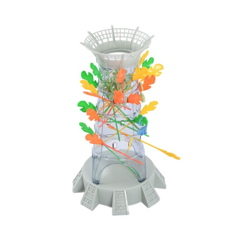 Coloque os raptors dentro da torre, gire a roleta e vá puxando as varetas.