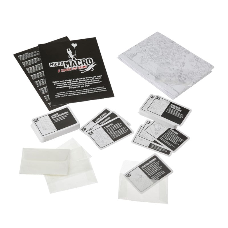 Micro Macro é um jogo cooperativo de investigaçãoque vai colocar suas habilidades de dedução à prova. Você e seus amigos deverão procurar no mapa gigante evidências dos crimes, analisar suspeitos para definir o motivo do crime. São 16 casos de mistério com 5 níveis de dificuldade, onde todo mundo joga ao mesmo tempo. Se você quiser aumentar o nível do desafio, pode jogar a versão avançada.