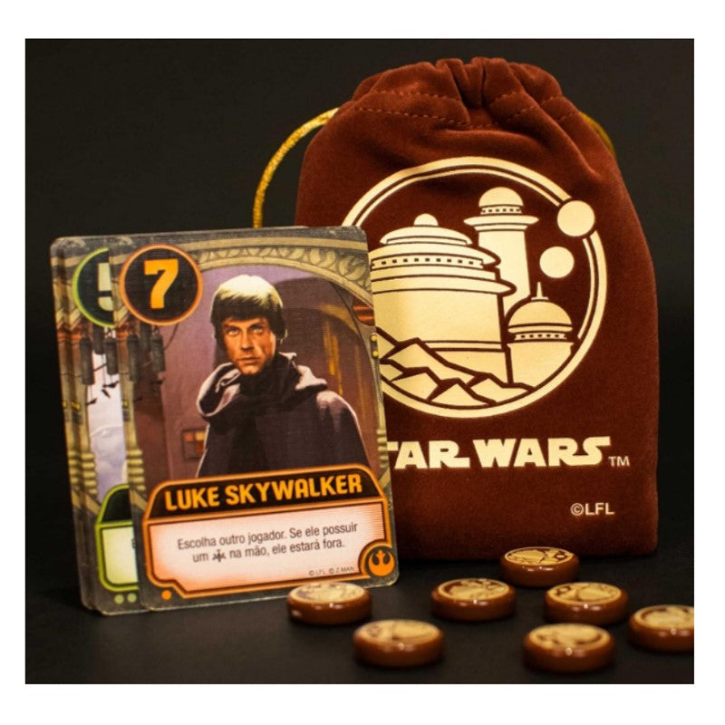 O covil de Jabba, o Hutt é um lugar de perigo e engano. Os jogadores competem usando membros da Aliança Rebelde e habitantes do Palácio de Jabba em um jogo de bravura rebelde e engano vil. É um jogo baseado no amado jogo de cartas, Love Letter, e ambientado na galáxia da franquia Star Wars. A mecânica é simples e divertida: jogadores compram uma carta em seu turno e usam uma das duas que estão em sua mão.