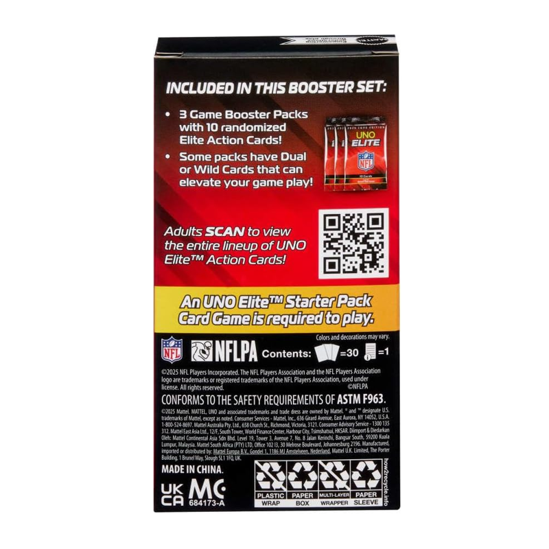 O JOGO UNO Elite NFL é a expansão perfeita para fãs de UNO e da NFL, trazendo mais ação e estratégia para suas partidas. Ideal para colecionadores e jogadores que buscam elevar o nível do jogo. O JOGO UNO PACOTE IMPULSO, fabricado pela renomada marca Mattel, é um kit de expansão para o jogo UNO Elite NFL, elaborado com Papel Cartão . Este produto é ideal para fãs de jogos de cartas e da NFL a partir dos 7 anos de idade e também é uma excelente adição para coleções de jogos de tabuleiro e cartas.