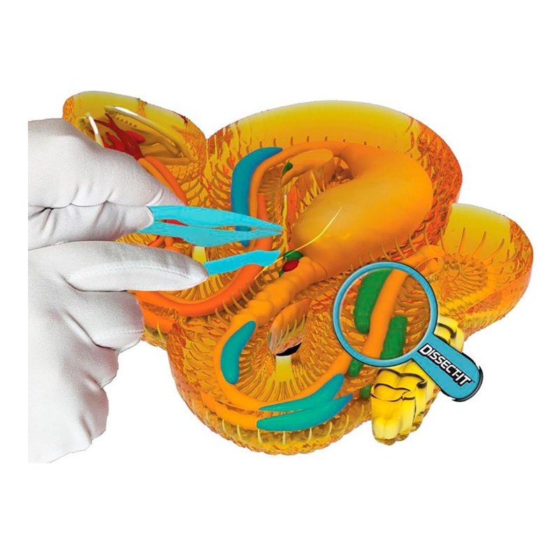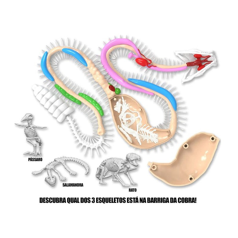 Explore a anatomia de uma cobra cascavel com o Kit de Dissecação Dissect-It. Simule uma dissecação realista com material sintético, revelando ossos, órgãos e estrutura esquelética. Inclui 2 refis de gel, manual colorido, ferramentas e mesa de dissecação. Uma experiência educativa e divertida para aprender sobre biologia de maneira segura e prática. E descubra qual foi a ultima refeição da Cobra ( Salamandra, Rato ou Passaro).