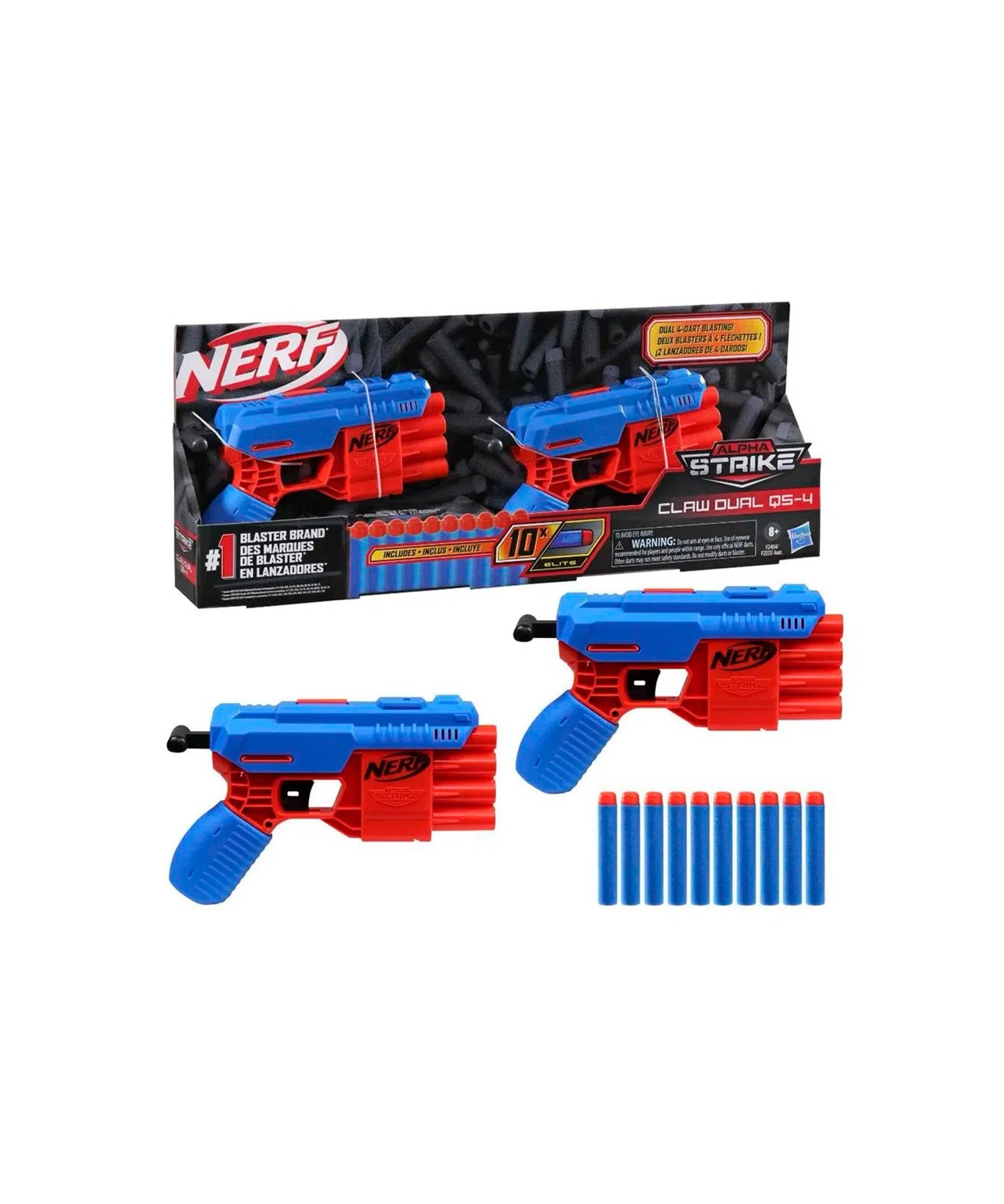 O kit de lançadores Claw Dual QS-4 vem com lançadores que possuem 4 tubos frontais para lançar até 4 dados sucessivos! Fácil de brincar: Basta inserir 10 dardos em cada tudo, puxar a manopla, e pressionar a alavanca de disparo para lançar 1 dardo. Os lançadores Alpha Strike são excelentes para iniciantes que acabaram de conhecer as aventuras cheias de adrenalina com a potência e a performance da marca Nerf. Também é uma ótima adição para os antigos fãs da Nerf.