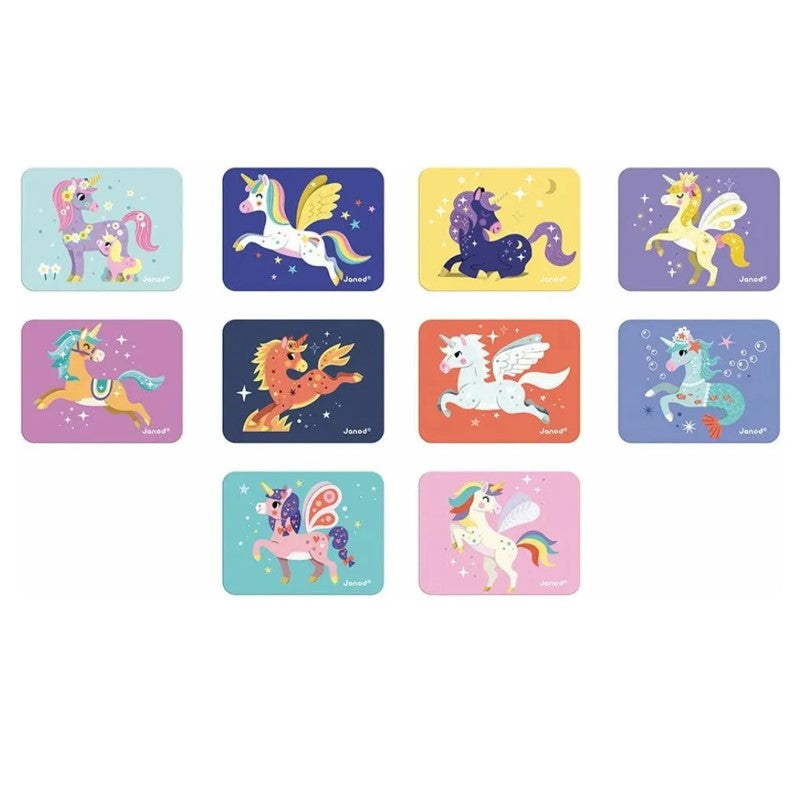 O Magneti'Book Unicórnio é um convite para um mundo mágico cheio de cores e fantasia! Com 44 peças magnéticas e 10 cartões, as crianças podem recriar as cenas sugeridas ou soltar a imaginação para criar suas próprias combinações encantadas. Esse brinquedo educativo desenvolve a criatividade, o raciocínio lógico e a coordenação motora, garantindo momentos de diversão em casa ou durante viagens. Qual história mágica você vai inventar hoje?