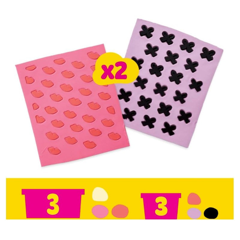 As 2 folhas de padrões de Play-Doh trazem designs estilosos de batom e laços que parecem quase tecidos de verdade mas são feitos de massa Play-Doh. Outros 6 potes de massa ajudam as crianças a adicionar ainda mais detalhes, como cabelo, babados, pelos de mentira e muito mais. Adicione acessórios de moda divertidos como laços e sapatos para completar o visual, e depois mostre o estilo dela no suporte giratório de exibição. Brinquedos Play-Doh como este conjunto criativo da Barbie são ótimas opções de presente.