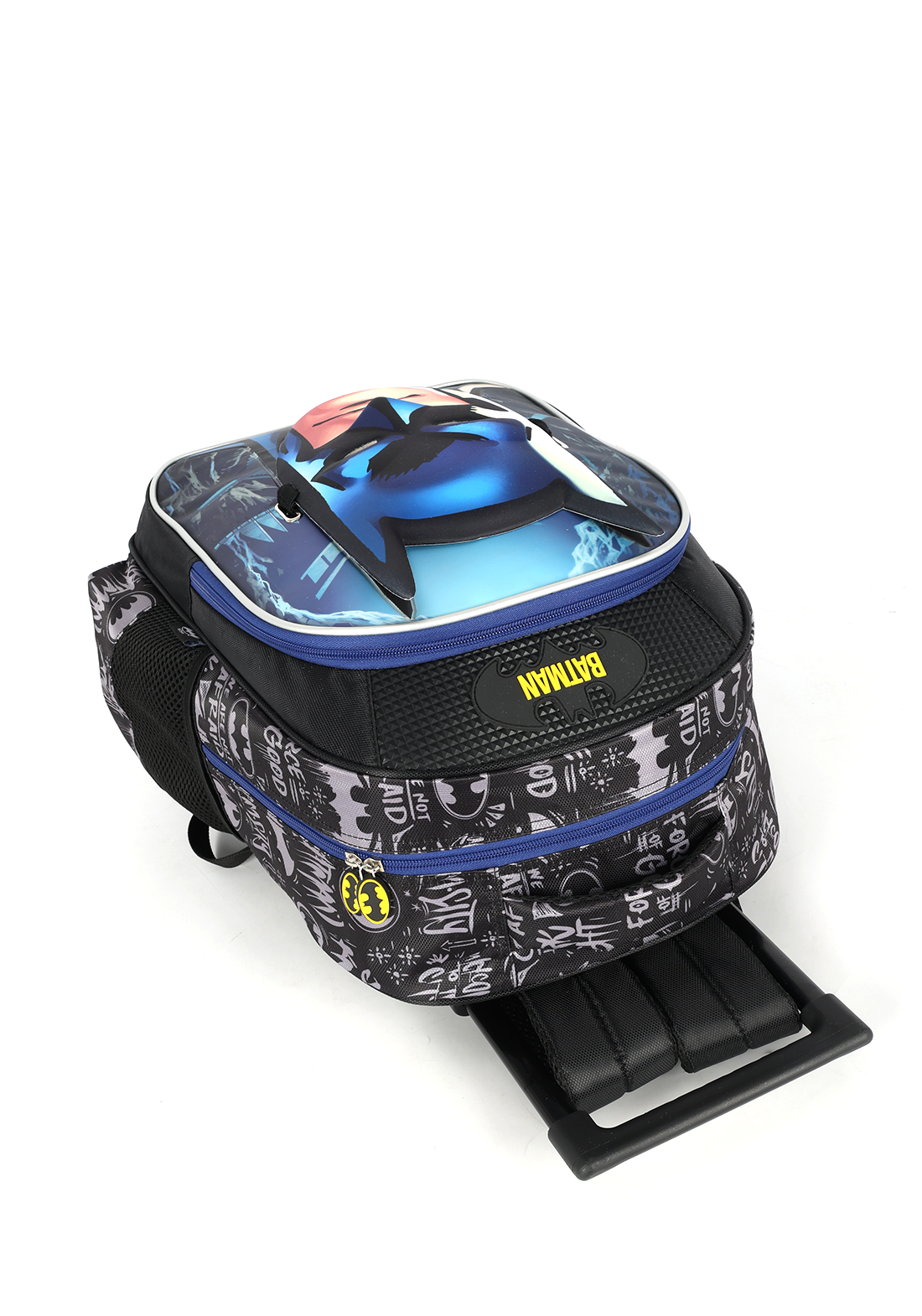 Não deixe o peso atrapalhar a missão! Garanta agora a Mochila de Rodinhas do Batman e leve a força de Gotham para a escola!