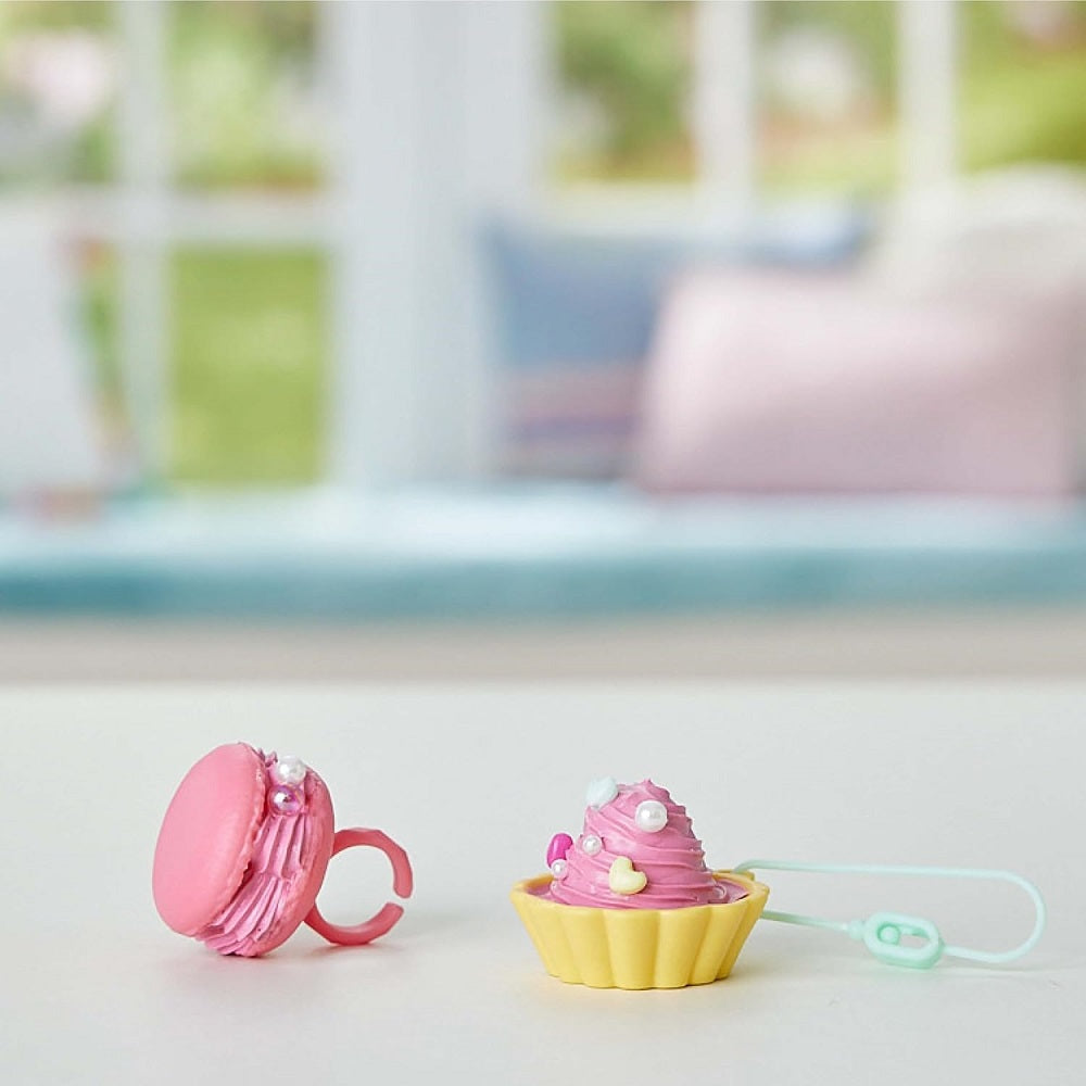 O Kit Party in Pink Creations vem completo com uma pasta Pati-school rosa e 2 bases de artesanato diferentes inspiradas em guloseimas que podem ser usadas como anel e chaveiro!