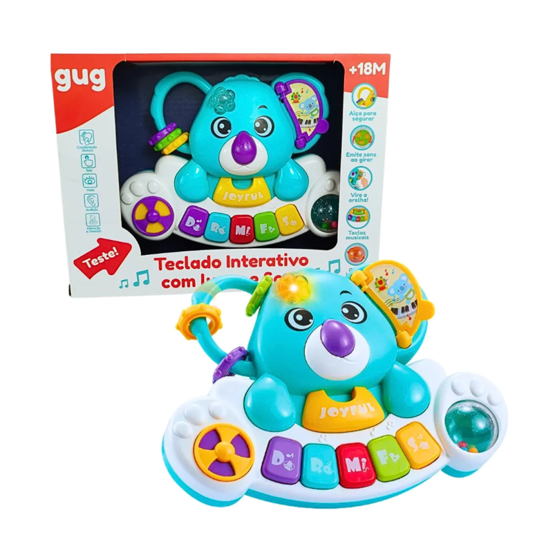 O Coala Musical da Shiny Toys é pura diversão para os pequenos! Com teclas que emitem sons de notas musicais, sons de animais, músicas variadas e efeitos sonoros, ele é ideal para estimular a audição, visão e coordenação motora do bebê. A brincadeira fica ainda mais interativa com a luz que pisca no ritmo dos sons e com o livrinho integrado que, ao ser folheado, alterna os modos de som. Além disso, o Coala conta com chocalho, formas e cores vibrantes que despertam a curiosidade dos bebês.