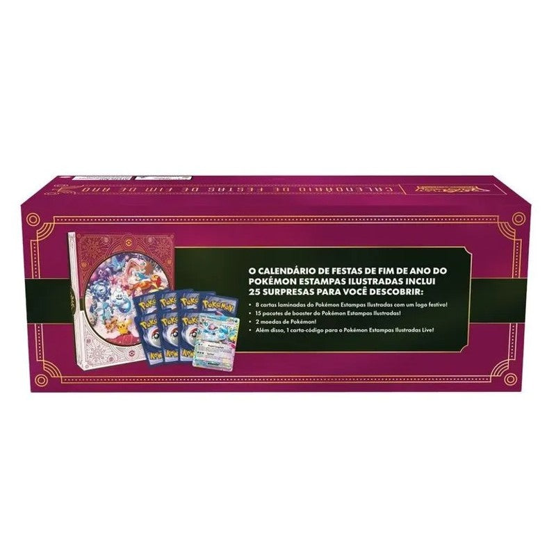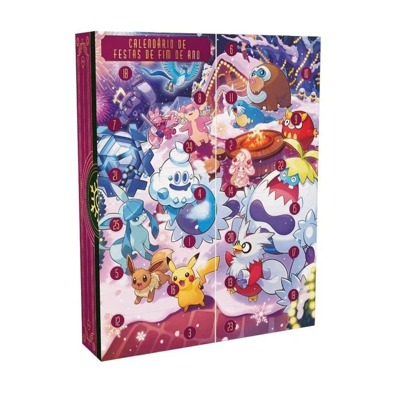 Prepare-se para 25 dias de surpresas incríveis com o Calendário de Festas de Fim de Ano do Pokémon Estampas Ilustradas! Este combo de boosters é a maneira perfeita de celebrar, revelando uma nova surpresa Pokémon a cada dia, desde pacotes de booster emocionantes até moedas colecionáveis. O Pokémon Calendário de Festas Fim de Ano 25, fabricado pela renomada marca Copag, é um emocionante calendário de advento temático de Pokémon, elaborado com Papel, Plástico e Metal, e projetado para proporcionar 25 dias de descobertas e alegria. Uma coleção única e limitada, perfeita para celebrar as festas e enriquecer sua coleção de Pokémon.