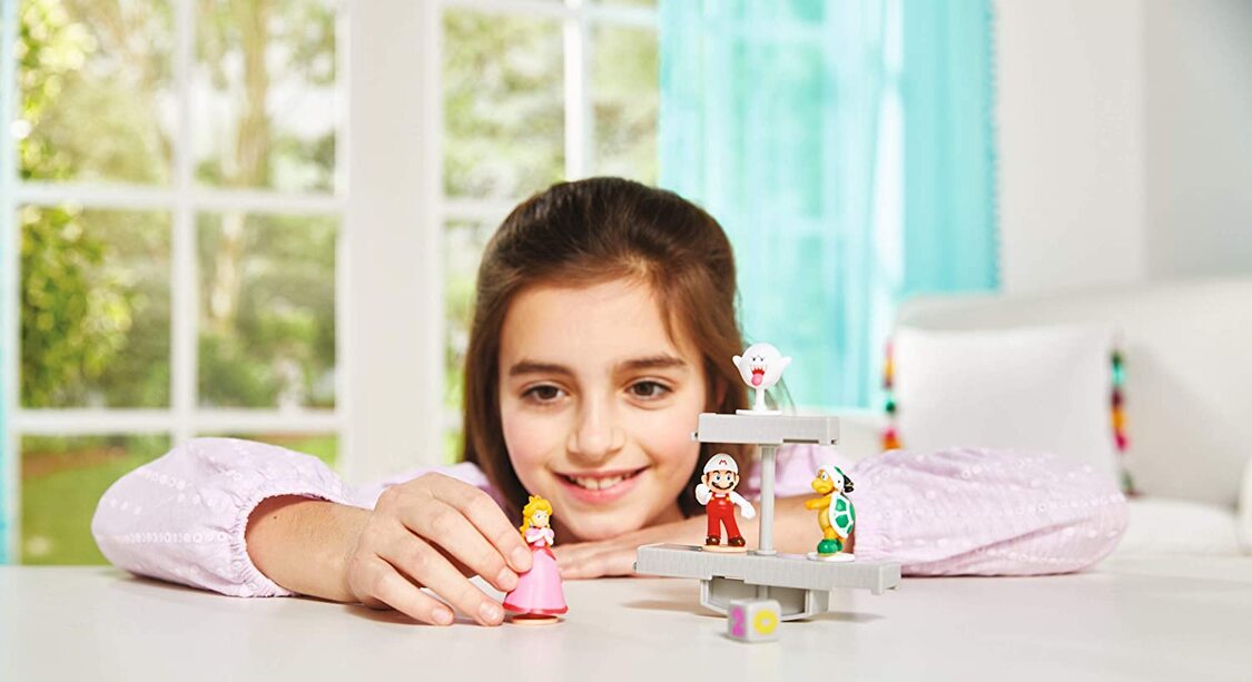 O Super Mario Balancing Game é simples e divertido. Siga as instruções dos dados e coloque as figuras no topo do palco. Você pode aumentar o palco combinando peças de outros jogos da série, vendidos separadamente.