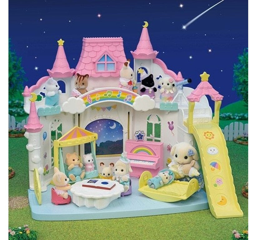 O Castelo Ensolarado Jardim de Infância vem com um jardim de infância com mudança de tempo e o Bebê Coelho Floral.