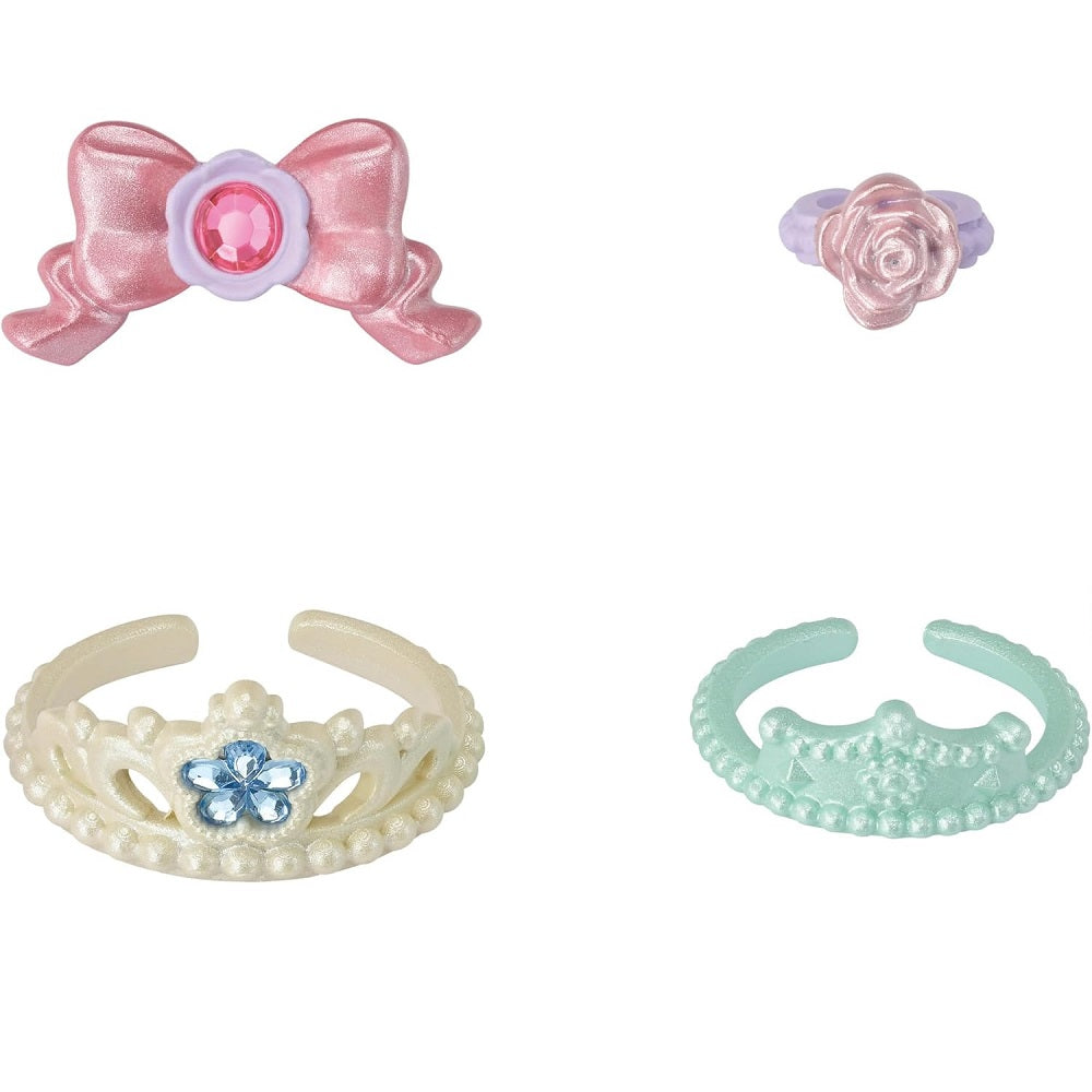 Contém:1x Freya, a Coelha Chocolate com um lindo vestido rosa.1x Lyra, a Gata Persa com um maravilhoso vestido azul floral.1x Rae, a bebê Husky com traje de princesa.1x Rose, a bebê Cervo com traje de princesa.Acessórios encantadores, incluindo 2 tiaras, 1 laço de cabelo com pedra preciosa e 1 anel.