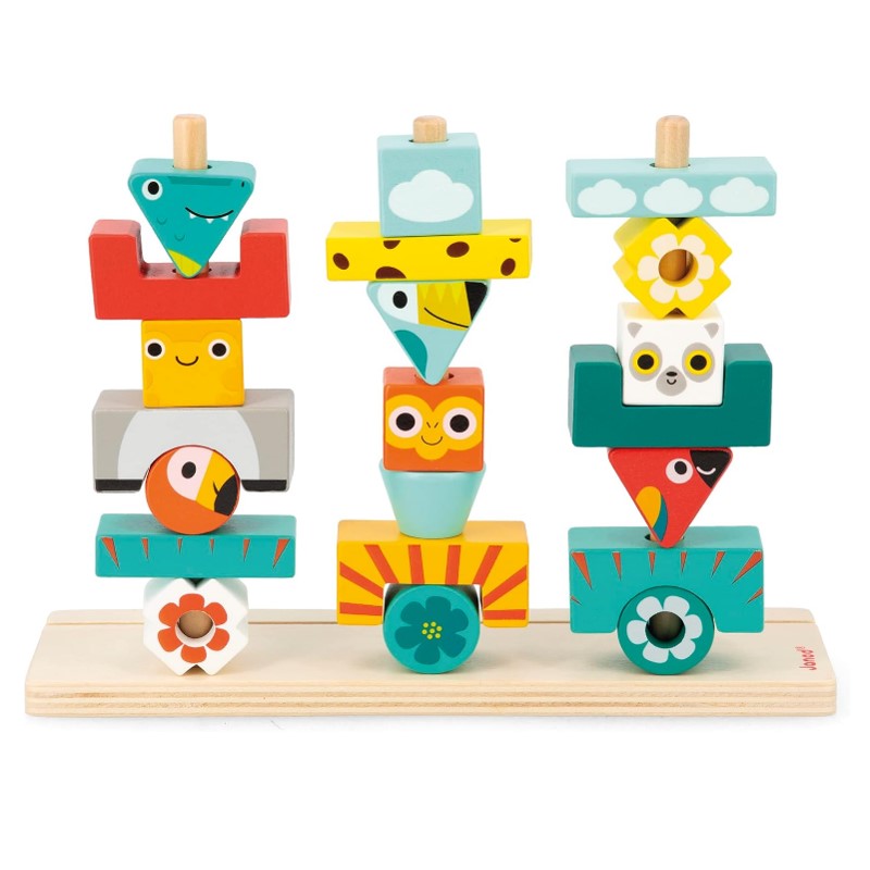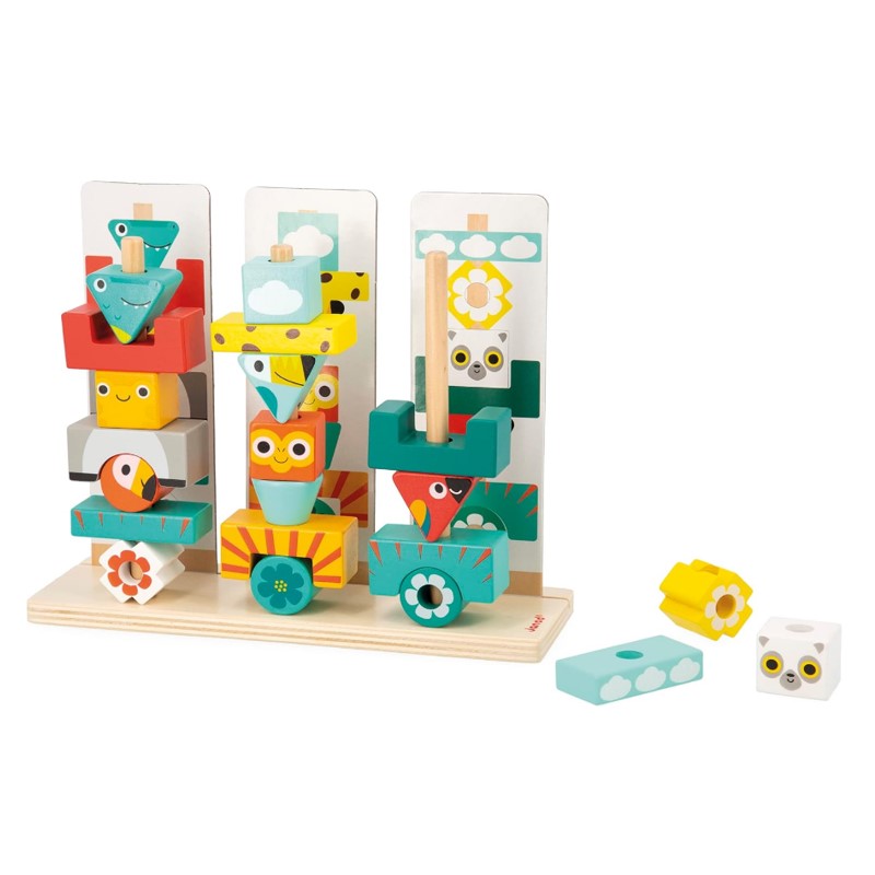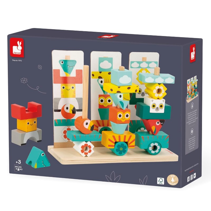 Aqui está um magnífico jogo de observação e reflexão em madeira. Rume aos trópicos com suas cores quentes e animais fantásticos para um jogo de Totem. Um jogo educativo em que a concentração é obrigatória. O princípio é simples recriar os modelos indicados nos 6 cartões frente e verso impressos nos 3 postêrs de madeira, utilizando os 52 elementos incluídos. As peças vêm em todos os tipos, formas e cores. Você terá que encontrar o caminho certo e colocá-lo do jeito certo. E porque não dar asas à imaginação e criar totens cada vez mais originais. As crianças também vão adorar encontrar os animais da selva.